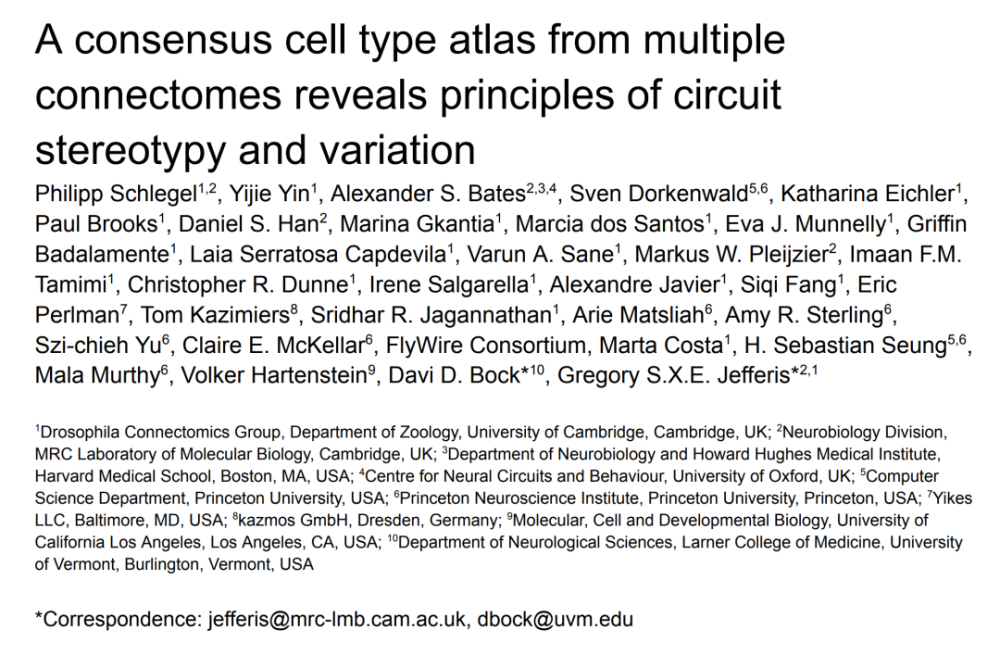 FlyWire 连接组是迄今为止获得的最大和最复杂的连接组。在另外一篇论文《A consensus cell type atlas from multiple connectomes reveals principles of circuit stereotypy and variation》中,团队提出并回答了一些关键问题,进一步解释了这种规模的连接组: