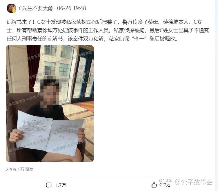 最后,经过协商,双方达成了和解,C女士出具了谅解书,私家侦探被释放,蔡母也免了牢狱之灾。