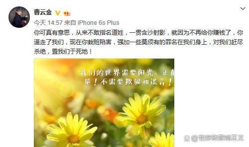 曹云金,大可不必本着好马不吃回头草的意念死扛到底,说实话,在师傅面前低头认错并非是丑事,男儿膝下有黄金是针对一般人的,对自己的师傅例外,同为梨园弟子,应当秉持”和为贵“的古训,没有必要真的为了一口气老死不相往来了,抬头不见低头见的,这样下去一点意思 也没有。