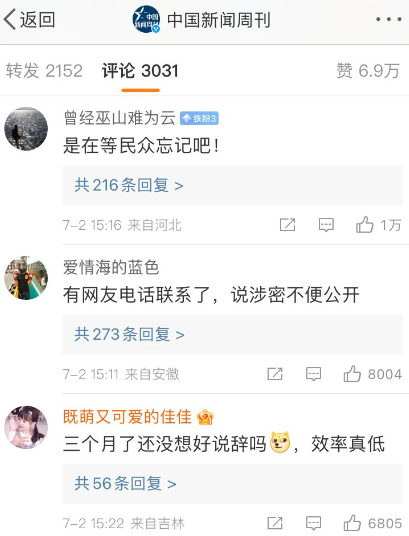 因为综合以上的信息来看,只要我们越让这个事有热度,这个事最终被不了了之的可能性就越低;我们越对这个事进行讨论,这个事最终的调查的结果就离真相越近。