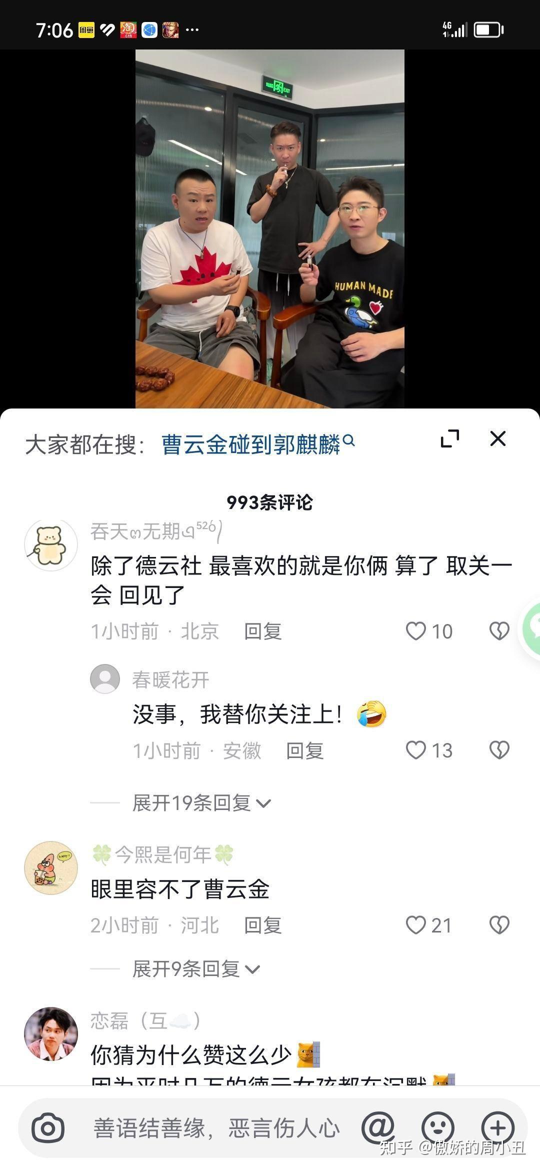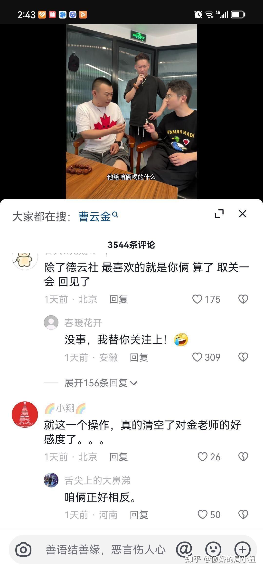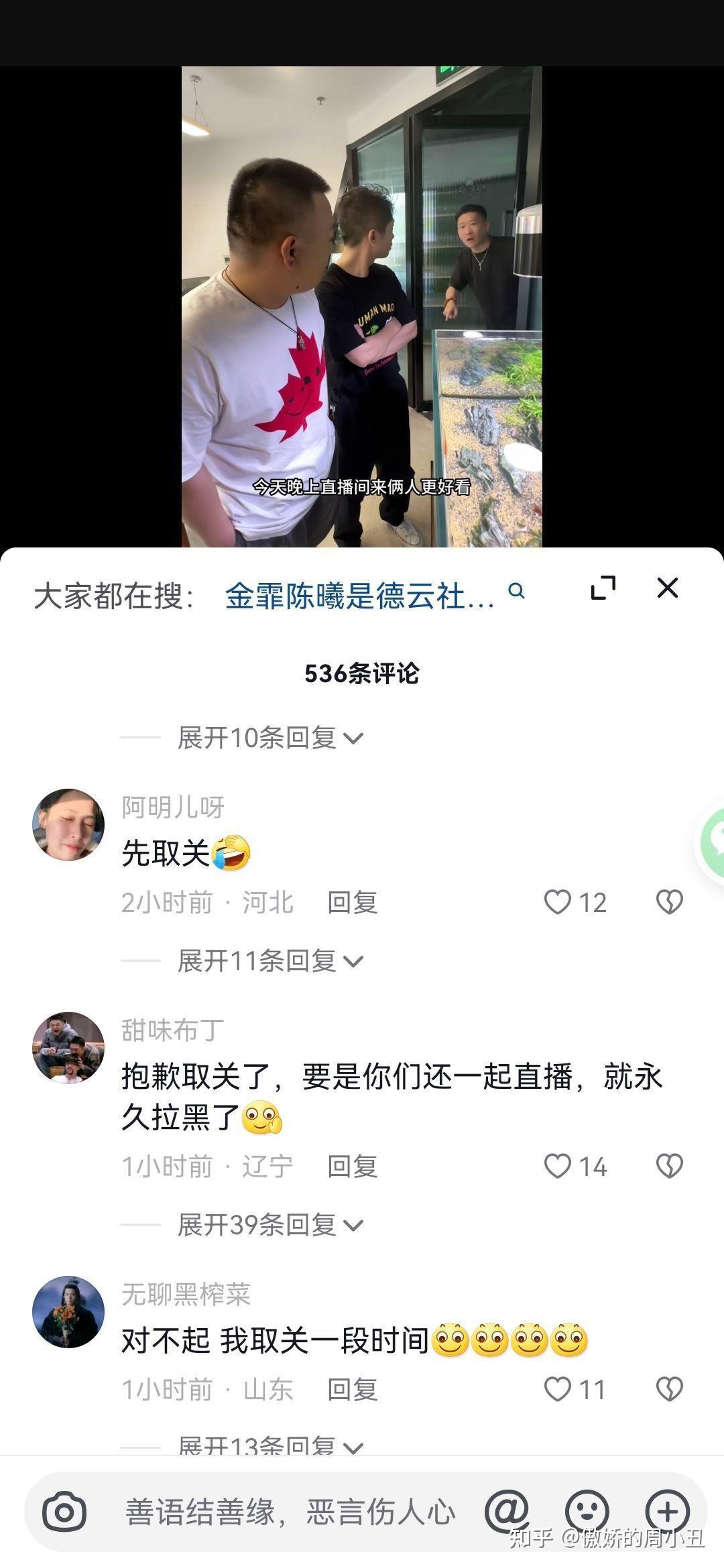 金菲陈曦受邀去曹云金直播间前一天,大量网友在他们视频底下统一留言取关,同时石斑瑜视频底下也出现了同类情况。
