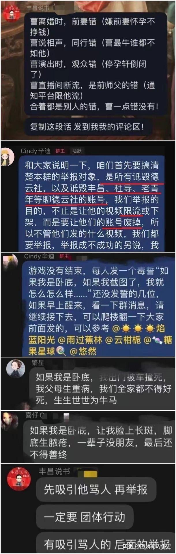 下面三张图丰昌,各个主流平台基本上都有几十万粉丝,郭德纲和王慧都关注过他,并且给王慧私信叫董事长也收到了回复,他曾经见郭德纲,郭德纲告诉他有拿不定主意的问栾云平。下面几张图是他们内部群用的一些手段,当事人对此事已经承认并且说这是平台赋予的权力。群主辛迪最近郭德纲也关注了他,所以说什么老郭看一眼就输了的人就不用说了,老郭看得不少。