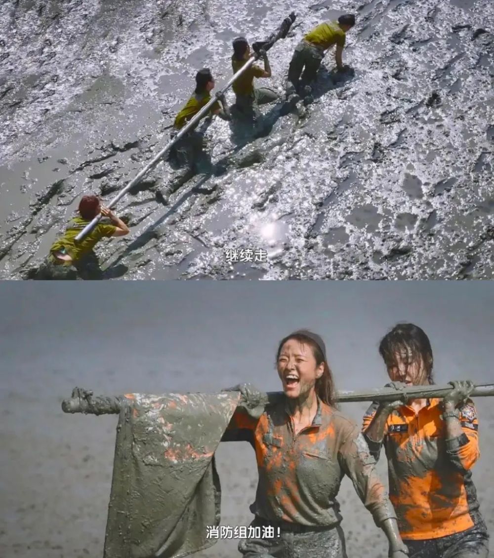 看着姐姐们扛着旗帜,哪怕连滚带爬、手脚并用、满脸泥浆,也在彼此打气中到达终点,真的很燃。