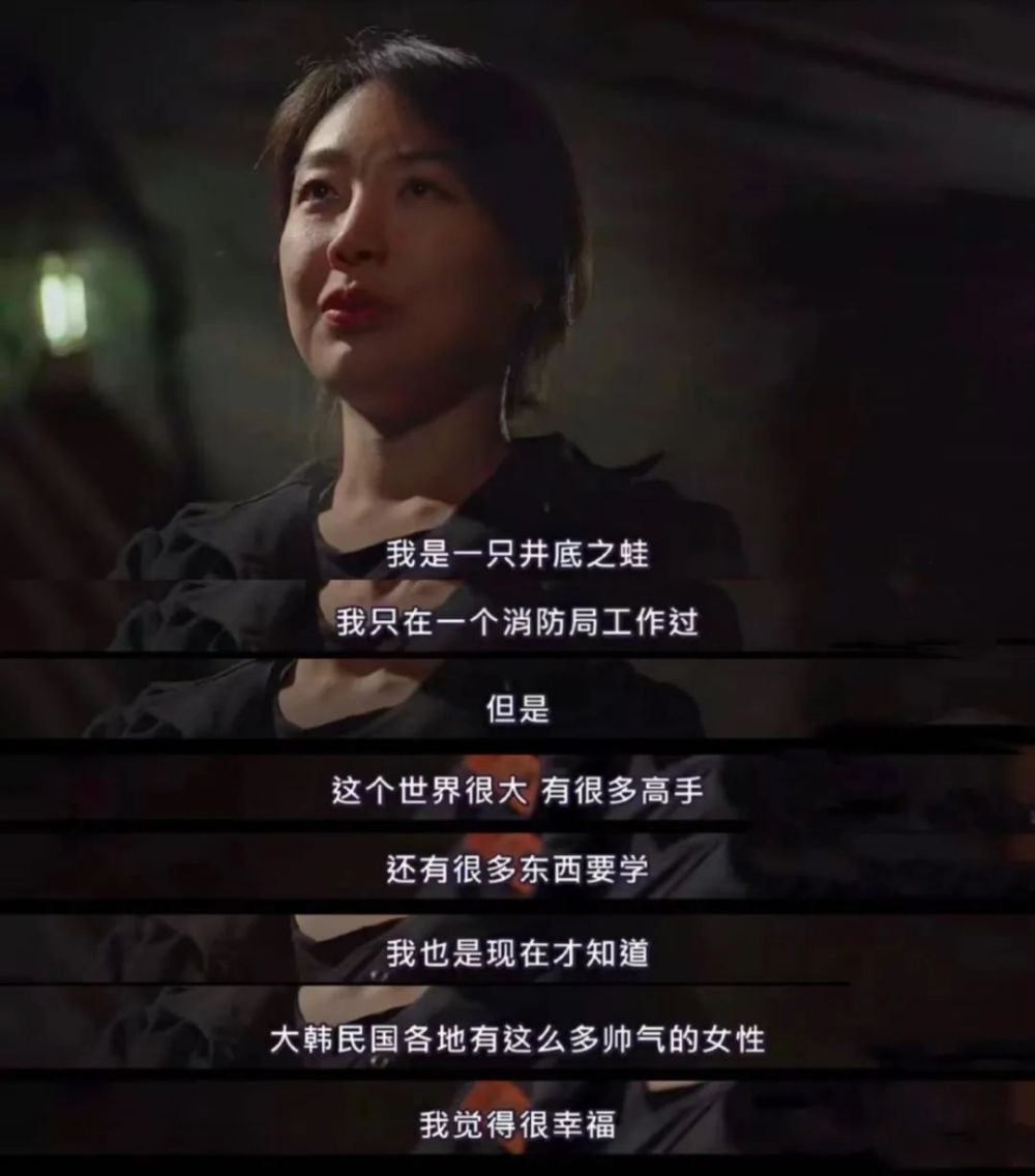 “我只是一只井底之蛙,我只在一个消防局工作过,但是,这个世界有很多高手,还有很多东西要学,我也是现在才知道,大韩民国各地有这么多帅气的女性,我觉得很幸福。”
