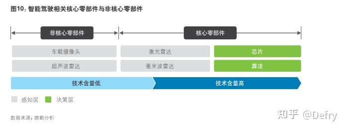 在零部件方面,决策层的芯片和算法,感知层的激光雷达和毫米波雷达等属于核心的零部件,成本自然比较高且门槛也高。