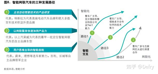 基于上面的分析,在德勤看来,打造智能网联汽车会有三种发展路径:主攻自动驾驶技术的产品研发路线、以网联化快速加持产品力路线以及用户思维主导的智能座舱路线。