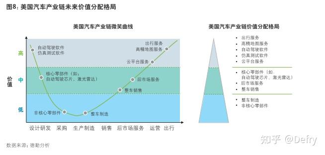 自动驾驶的发展会使汽车产业链价值分配格局发生改变首先随着自动驾驶技术的成熟和商业化落地,德勤认为核心零部件由体现动力和驾驶操控体验的传动转向体现自动驾驶技术水平的智能软件系统和处理器芯片,价值链顶端由传统主机厂转向科技新贵。