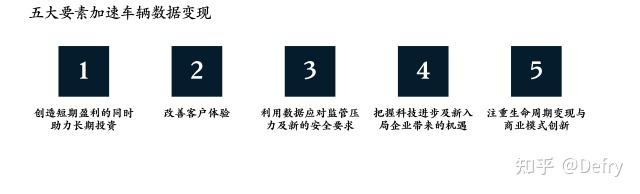尽管OEM和产业链上的其他企业仍在数据变现上面临巨大挑战,但是,发展拐点已经到来。汽车行业若想加速数据变现进程,需要关注以下五大要素: