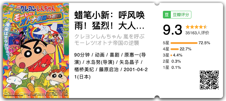 小徐师傅:剧情设定也好复古情怀也好搞笑段落也好,小孩想装大人大人却想变回小孩,笑到哭又哭到笑,蜡笔小新最精彩剧场版,没有之一