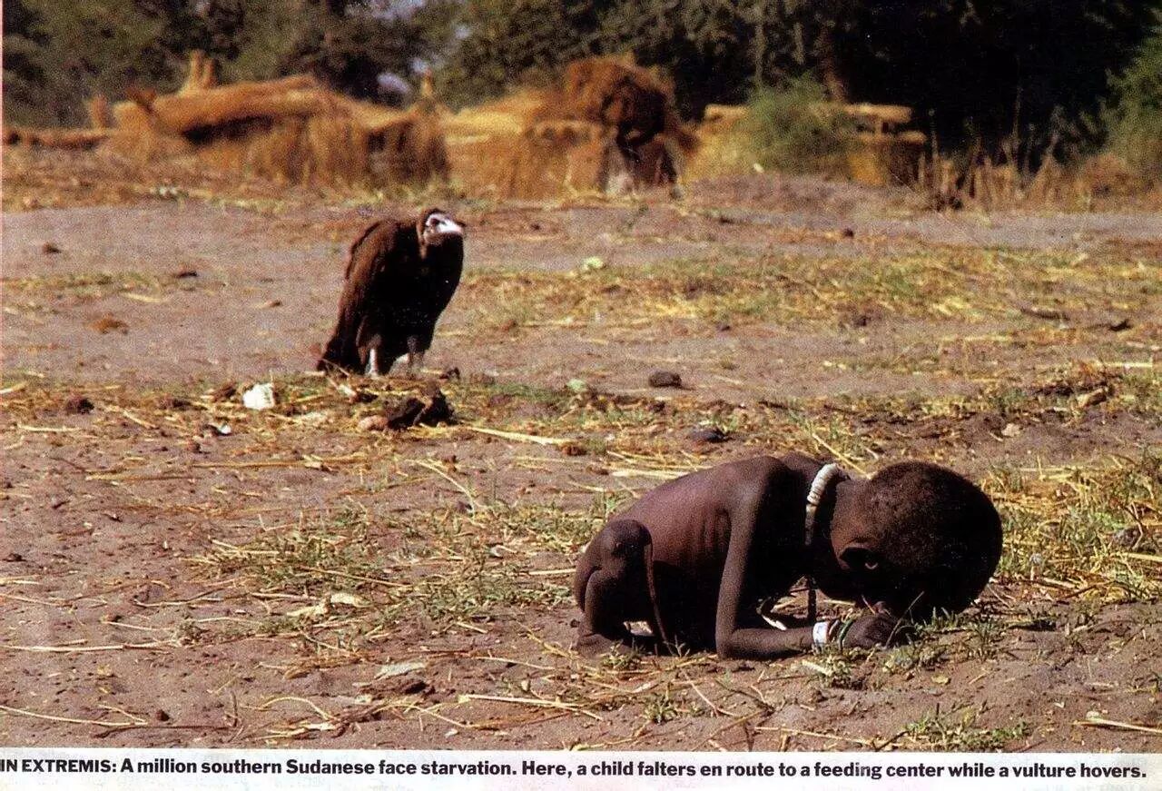 新闻史上有个著名的伦理故事。1994年,普利策新闻特写摄影奖获奖作品是《饥饿的苏丹》,照片上,一只秃鹫紧紧跟随一个奄奄一息爬向救济所的小女孩。为了拍摄,摄影师凯文·卡特等待了20分钟,甚至想拍到秃鹫展翅的镜头。直到最后一刻,他才按下了快门,赶走了秃鹫。