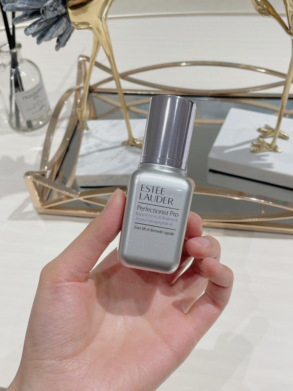 添加了10%提拉紧致双胜肽(?酰基六肽-8复合物、棕榈酰六肽-12复合物),还有6%复合生物精粹,浓度是比较高的,其中10%的双胜肽浓度是雅诗兰黛集团的精华产品中浓度最高的。