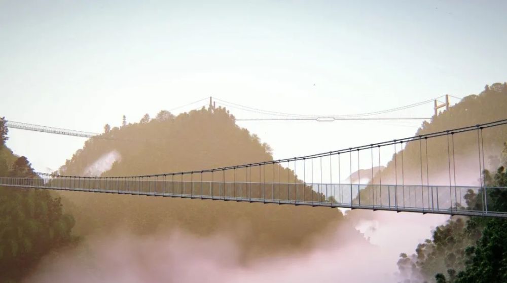 行走于这座高空单跨双塔人行悬索桥就好像天上的仙侣,漫步天端,悠然牧云 。