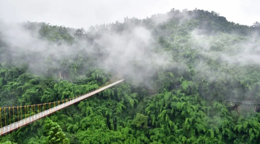 仙侣牧云桥横跨整个竹海总长165米,高105米,跨径199米,