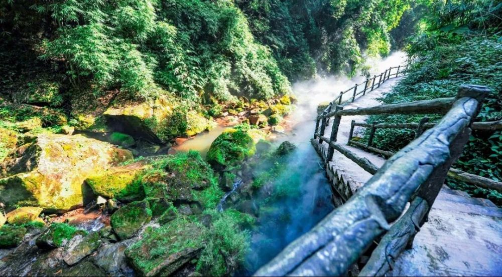 深谷栈道长约400米,沿谷底而建,一路溪水相随,鸟语如歌,清泉石语。