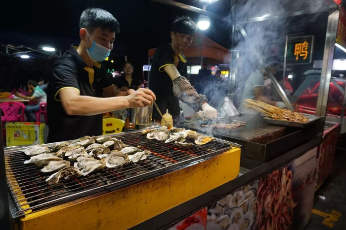 凌晨两点的路边摊,依旧火爆,算算时间,从下午出摊到现在,已经连续工作了多少小时了呢?汗水早已浸透衣服,但心里是开心的。
