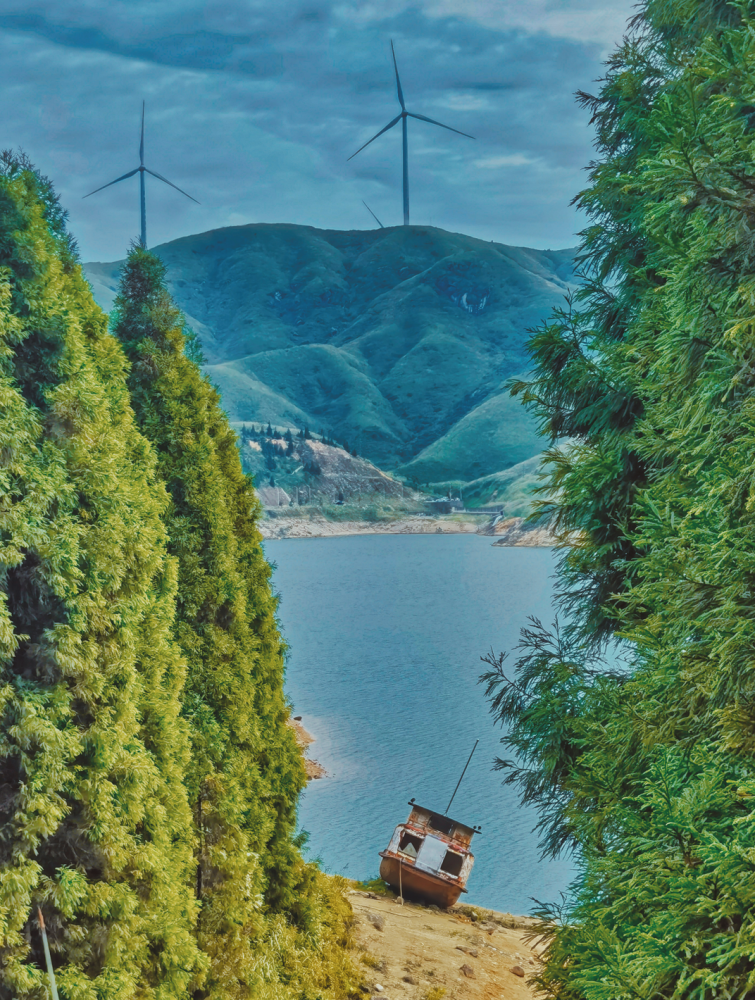 全州天湖里静卧着13座碧蓝如玉的湖泊,登上山顶,山峦湖泊,风车日落,把所有的浪漫尽收眼底。