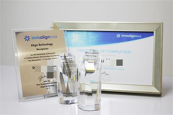 隐适美认证证书和白金医生奖杯
