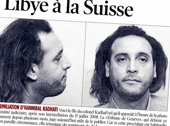 2009年9月4日,卡扎菲的五儿子汉尼巴尔-卡扎菲的照片出现在日内瓦论坛报第四版。