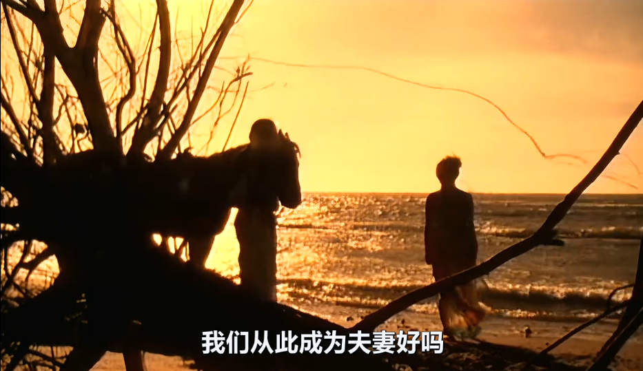 最让人印象深刻的一幕是剧集结尾,金莲与武松诀别的那一幕,夕阳余晖下,两人行走在沙滩上,昏黄色调的剪影,极为贴合那种悲怆哀婉的氛围,为两人的悲剧埋下伏笔。
