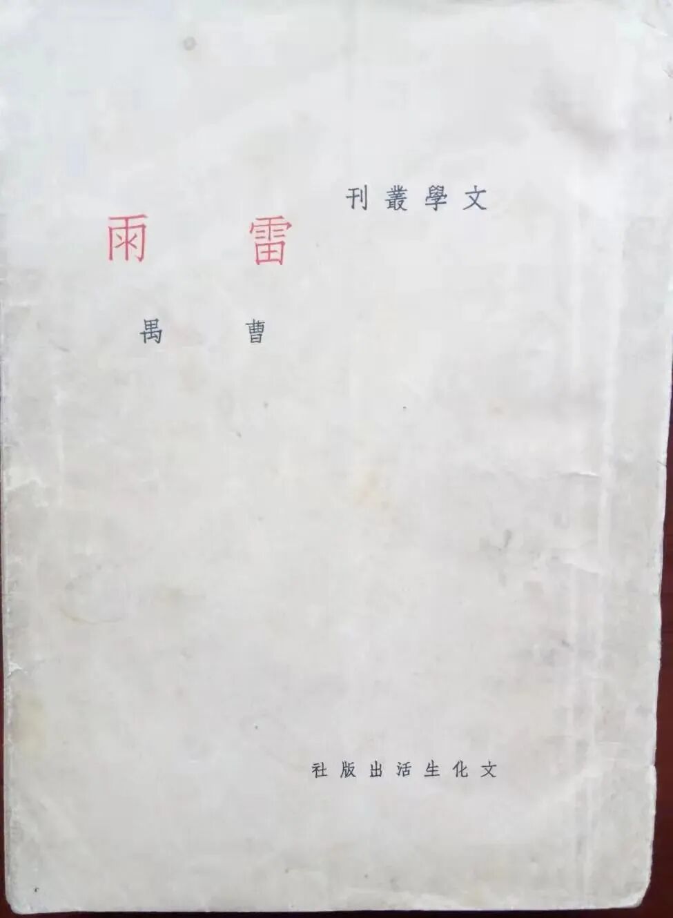 《雷雨》文化生活出版社初版本封面
