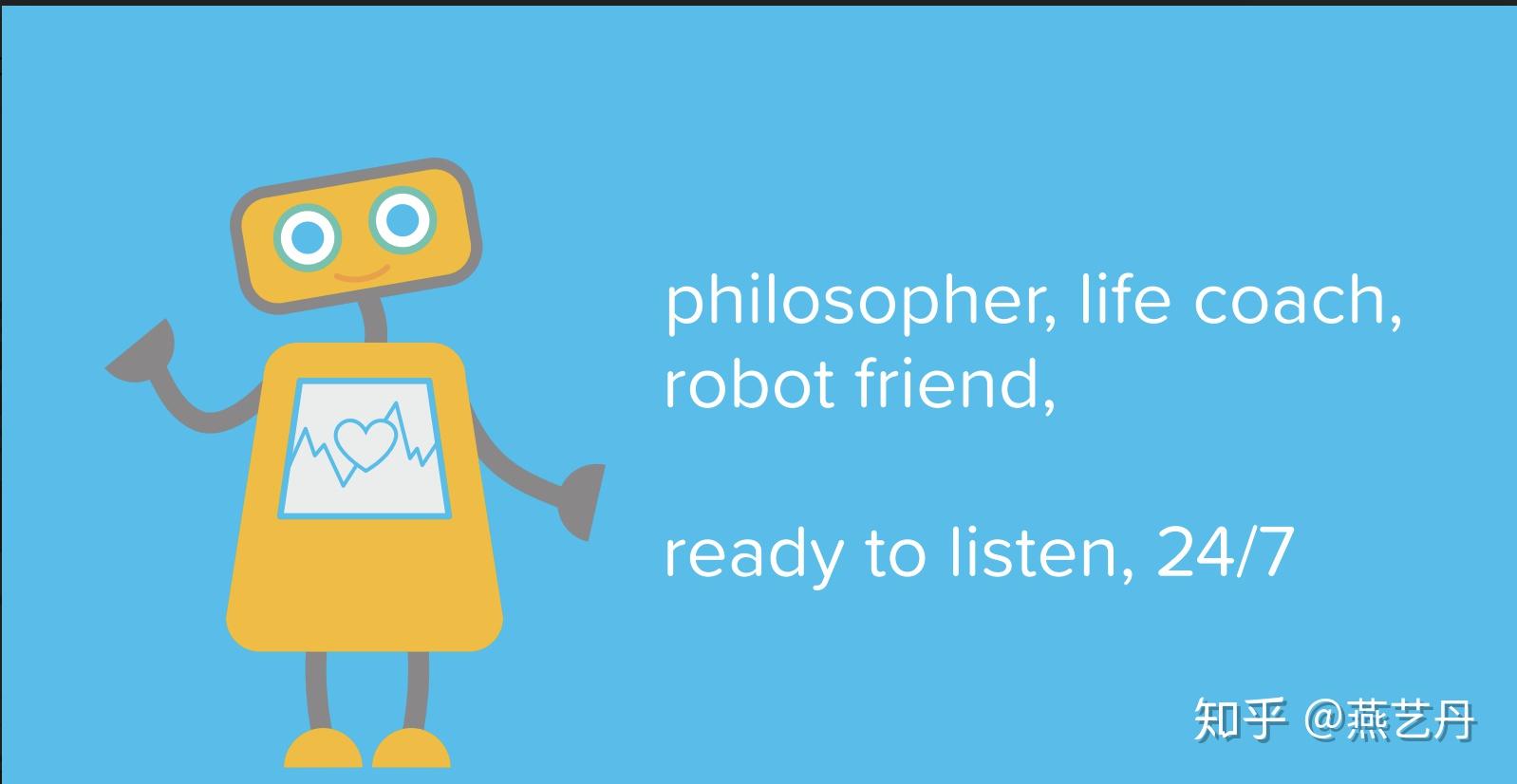 并且,机器人毕竟是机器,无法取代人与人之间的情感联接。woebot的创始人alison表示,woebot不是真人咨询师的替代品,也永远不会取代他们。woebot只是个机器人,它促使人们去了解自己的想法,避免钻牛角尖,伤害自己的健康,“最终的一切学习和改变还都是需要本人自己去做。”Alison博士说。
