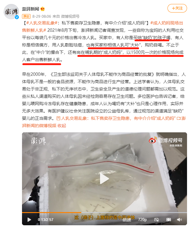 最近有很多粉丝私信菌菌,让菌菌一定要在我们的平台批判一下这种“人乳交易乱象”,让更多人能够看到。