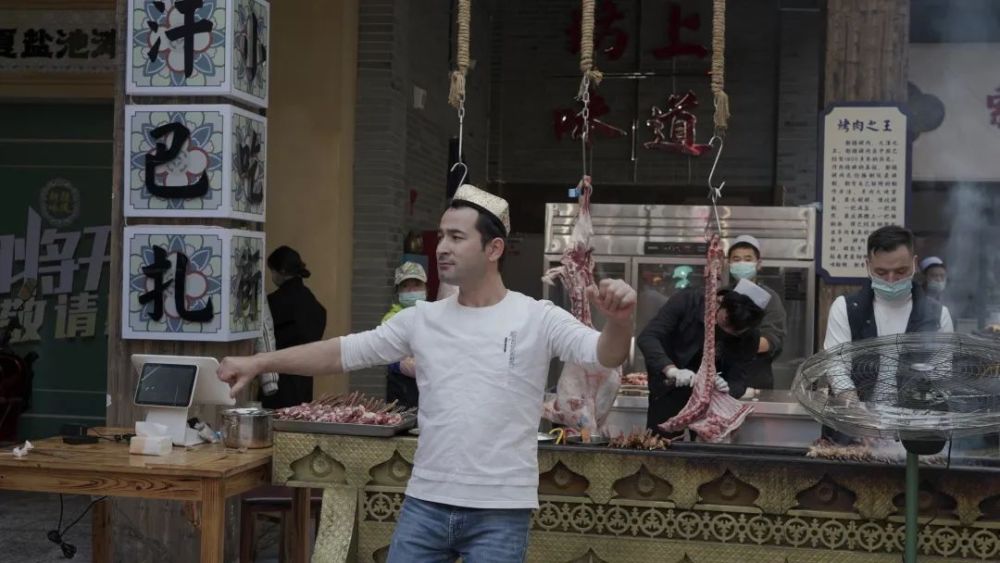 篝火广场旁的回民小吃街,可以说是“复制”了西安北院门回民街。周治湘一边介绍一边招呼往来游客免费品尝刚出锅的羊肉泡馍:“在这里能体验到正宗的清真特色小吃,我最推荐的是回坊老孙家羊肉泡馍。羊肉肉烂酥香,馍吸汁却不糊汤,泡馍粒粒分明滑嫩有嚼劲,吃上一口才叫不虚此行!”