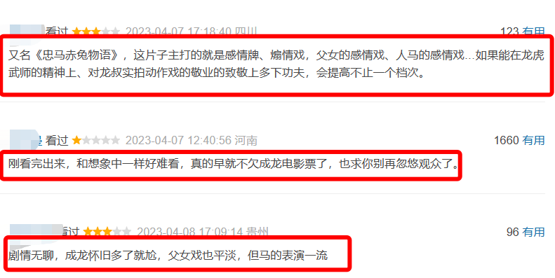 今年4月份上映的《龙马精神》致敬香港龙虎武师,意义非凡,还是由曾经那个辉煌年代的武打巨星成龙主演,这本应是一部充满情怀的片,但观众似乎并不买账。
