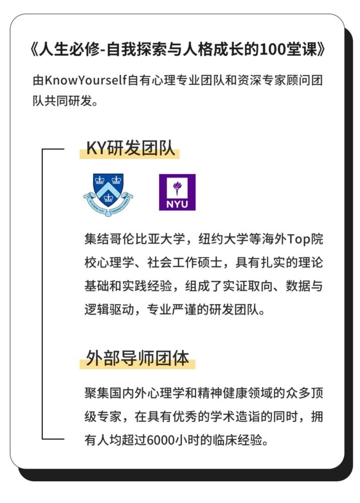 这套由KY研发的音频课程——《人生必修-自我探索与人格成长的100堂课》(以下简称人生必修课),能够帮助你进行深入地自我探索,提升全面的心理能力,提升幸福感。
