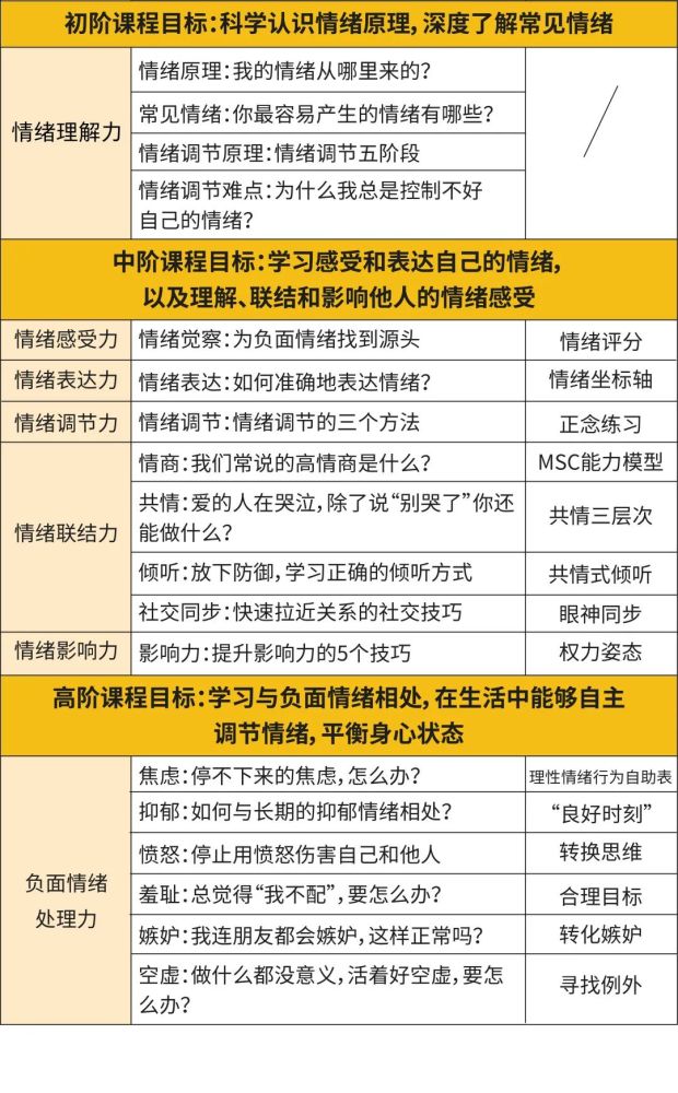课程内容上,我们结合大众生活中关心的心理话题,为你规划了六个人生重要议题:自我成长、生涯发展、家庭生活、人际交往、亲密关系、情绪管理,在此基础上为你精选了43个成年人必备的心理能力,100个专业的心理学知识点,匹配80个实用心理学工具,全面系统地为你阐述“想要发展成功能完善、适应良好的成年人,需要什么样的心理能力?”