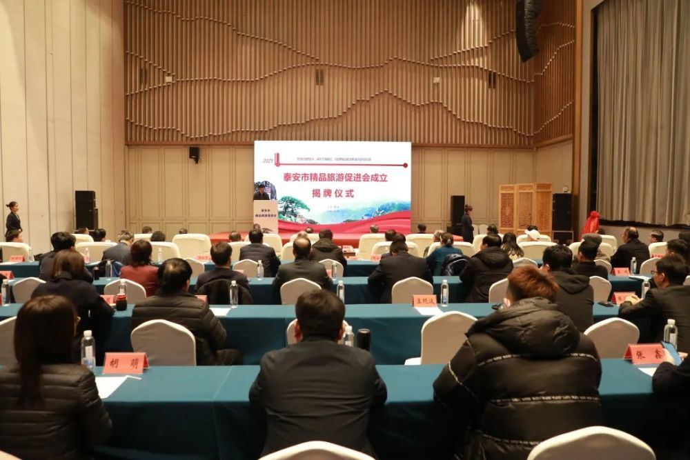 12月11日上午,泰安市精品旅游促进会成立揭牌仪式在东岳山庄隆重召开,省委原常委、省委秘书长、省政协原党组副书记、副主席雷建国,省委原副秘书长、省精品旅游促进会专家委员会主任杜文彬,省旅促会会长、舜和酒店集团董事长任兴本,省旅促会副会长、秘书长杨爱青,省旅促会副会长、山东龙腾竹泉旅游集团董事长韩建军,省旅促会副会长、曲阜市三孔文化旅游公司董事长颜涛,泰安市委常委、宣传部长刘洪海,泰山景区党工委委员、管委会副主任姜林,泰安市政府办公室、泰安市文化和旅游局、泰山索道运营中心相关负责同志,泰安市、泰山区、岱岳区文化和旅游局分管负责同志及有关业务科室负责同志,泰安市精品旅游促进会会员单位主要负责同志和新闻媒体记者参加活动。泰安市人民政府副市长、党组成员唐传营主持此次揭牌仪式。