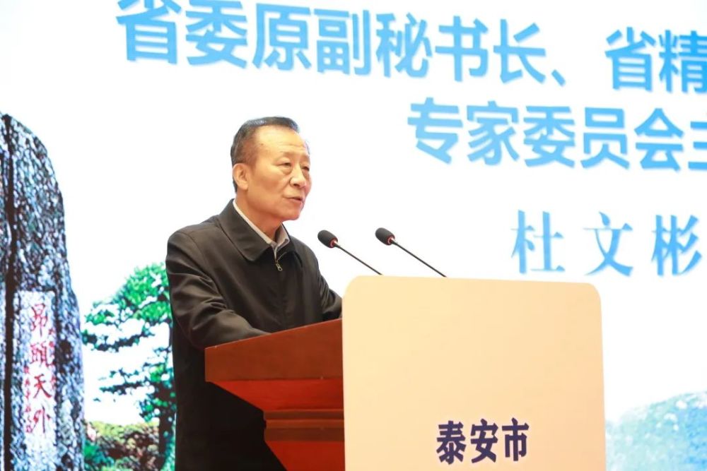 杜文彬同志代表山东省精品旅游促进会对泰安市精品旅游促进会的成立表示热烈祝贺。他指出,文化旅游一直是泰安的特色、优势和潜力所在。泰安市精品旅游促进会的成立,是泰安精品旅游产业发展的新起点,是泰安市乃至山东省文旅产业的一件大事、好事。同时对泰安市旅促会下一步工作提出了要求:一是把党的建设融入到协会运行和发展全过程,严格执行各项党建工作制度;二是深入贯彻落实省委省政府工作部署,积极参与新旧动能转换精品旅游重大工程;三是把精品意识和创新意识注入文旅产业,推动优秀传统文化和旅游产业深度融合;四是注重内部组织机构建设,完善会员大会制度,健全内部管理,不断提升工作能力和办会水平,在泰安市经济社会发展中树立起精品旅游的良好形象。