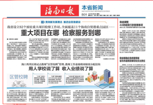 《海南日报》原名为《新海南报》,创立于195年,是中共琼崖区委员会机关主办的报刊。现为对开十六版,设有彩色版面。版面设置除了通常的要闻、国内新闻、国际新闻、产经新闻、体育新闻、娱乐新闻等版面以外,还有相当版面是面向省内、面向社会、面向群众的具有独特浓郁的地方特点的版面,非常受读者欢迎。《海南日报》现已发展成为拥有六报一刊一网六微二端全媒体矩阵的主流报业集团,成为“小省办大媒体”的生动注脚。