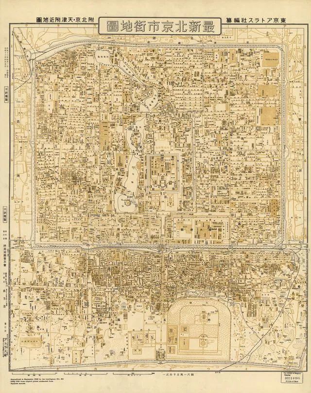最新北京市街地图,比例尺:1比15000,东京Atorasushasa社刊。