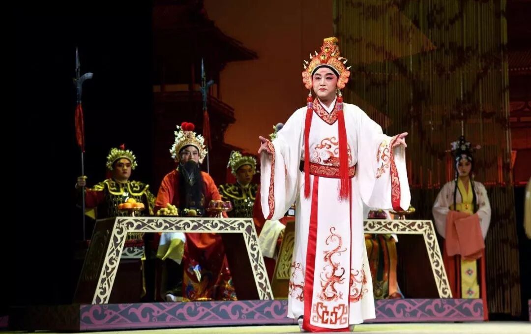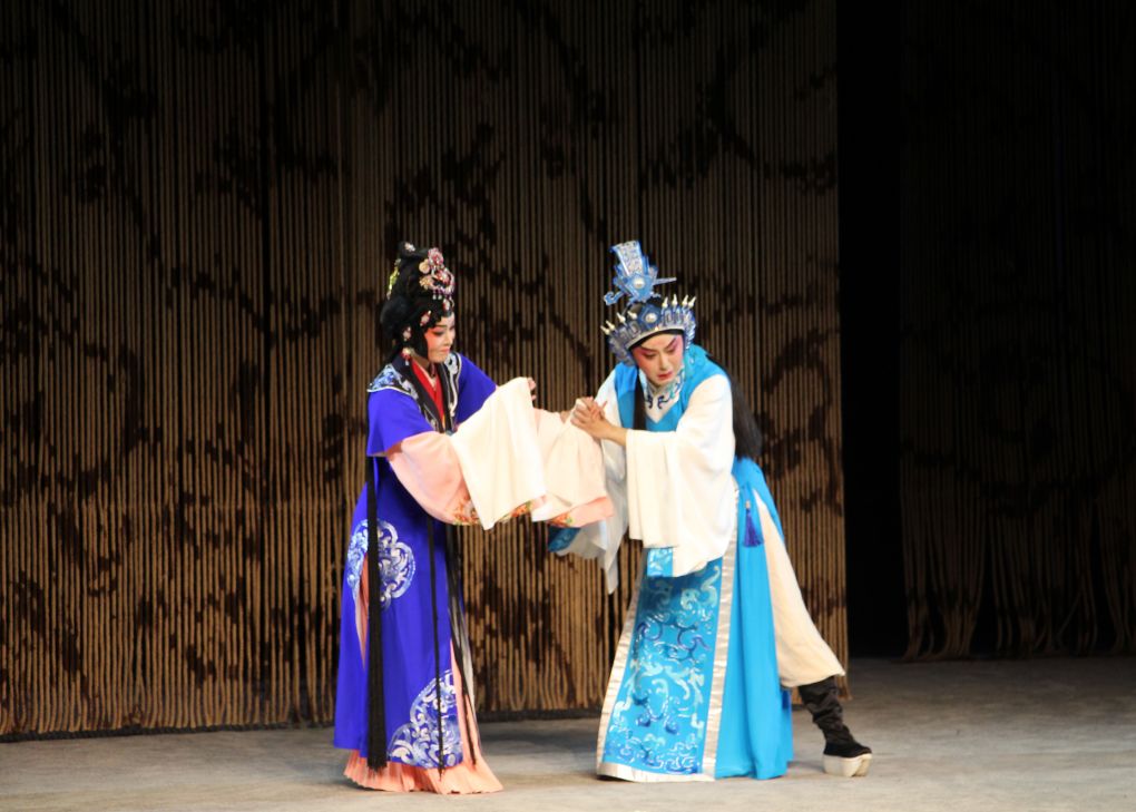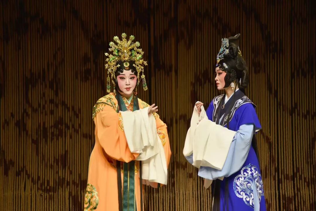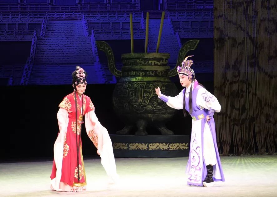 整场戏节奏连贯,“幸婢”一场是情节的发端。纱幕缓起,女演员身上穿着的襦和裙等具有浓郁汉代风格的服饰,唤起了一种古典气息,而古典气息又能够不断唤起我们久远的文化记忆和古典情怀,把传统戏曲的那份绵延的美丽召回。故事一开始的阴差阳错,唐儿代主侍寝,诞下龙子,为之后的故事发展做铺垫,也暗示了人物的悲剧色彩。