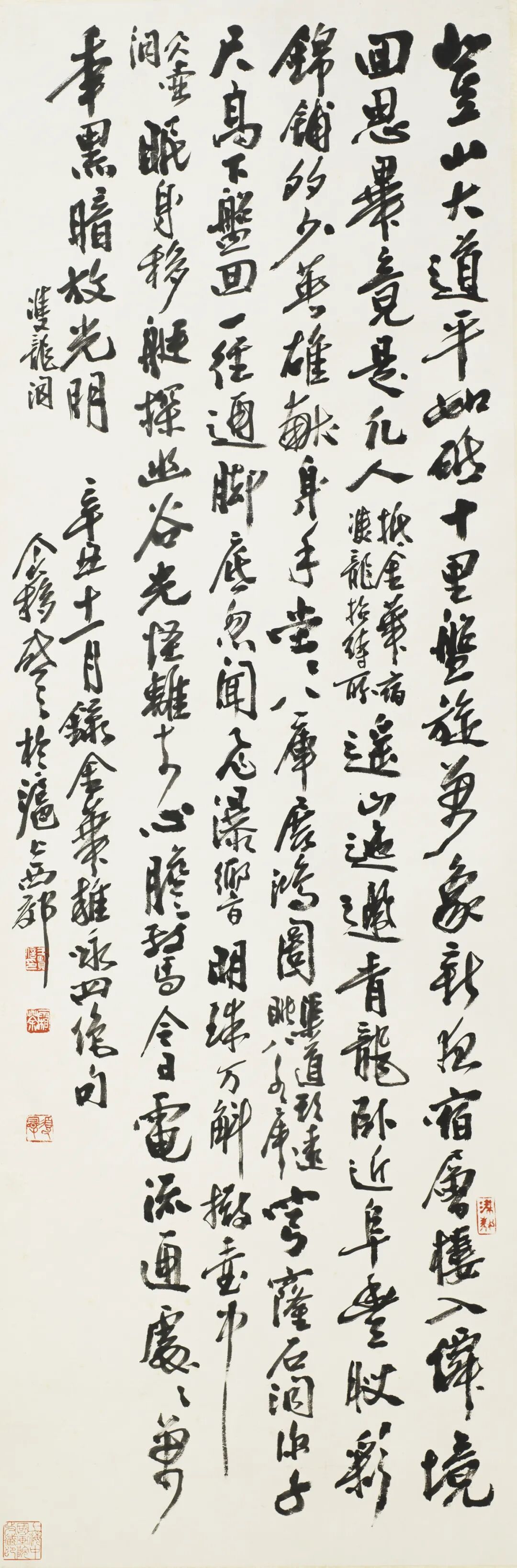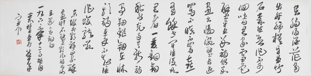 行书 苏轼七言《郭祥正家醉画竹石壁上 郭作诗为谢且遗古铜剑》 34×136cm