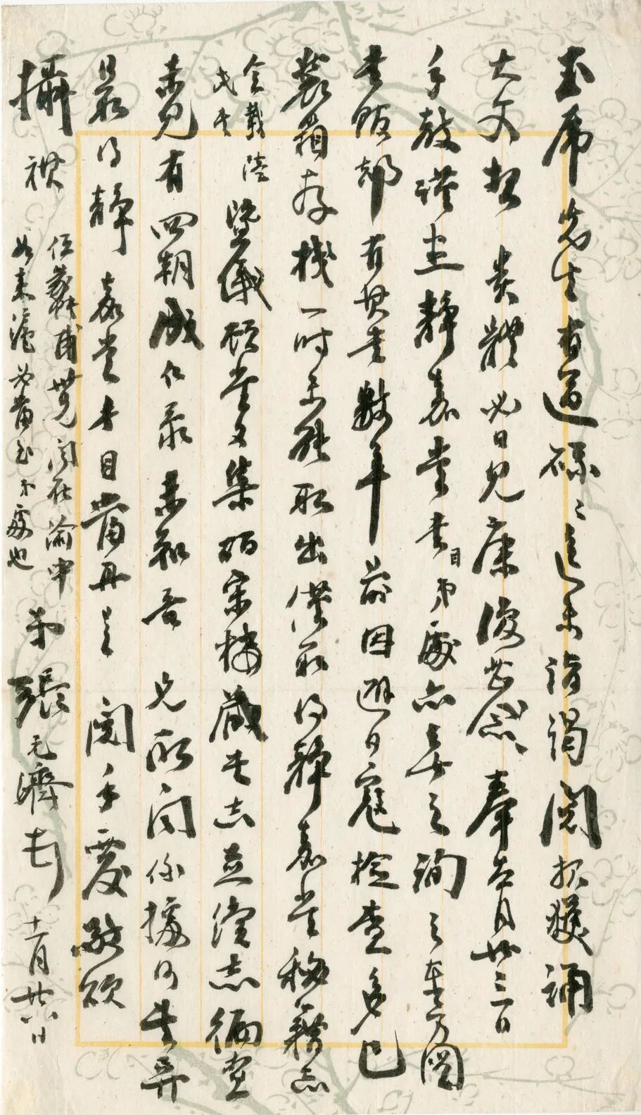 ◎释文:玉虎先生有道:碌碌近未诣谒,阅报获诵大文,想贵体必日见康复,甚念甚念!奉台月廿三日手教,谨《静嘉堂书目》,弟处亦无之,询之东方图书馆却有。其书数年前因邂日寇检查,多已装箱存栈,一时未能取出,仅取得《静嘉堂秘籍志》,全载陆氏书。既《仪顾堂文集》《皕宋楼藏书志并续志》并《续志》,徧查未见,有《四朝成仁录》,未知吾兄所闻系据何书?异日取得《静嘉堂书目》,当再呈阅,手覆敬颂,摄祺。伍蠡甫世兄闻在谕中,如来沪,为当至弟处也。弟张元济顿首,十一月廿八日。