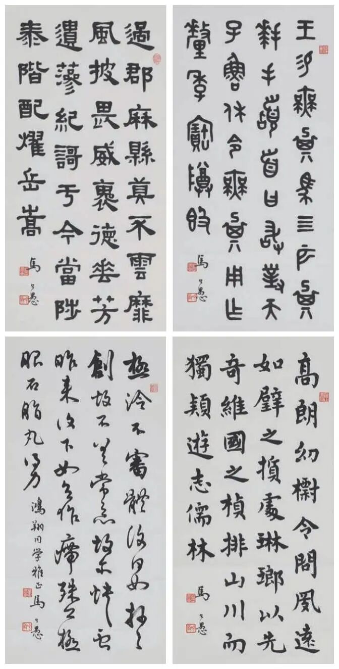 真草 隶篆四体四条屏 66.5×32.5cm×4