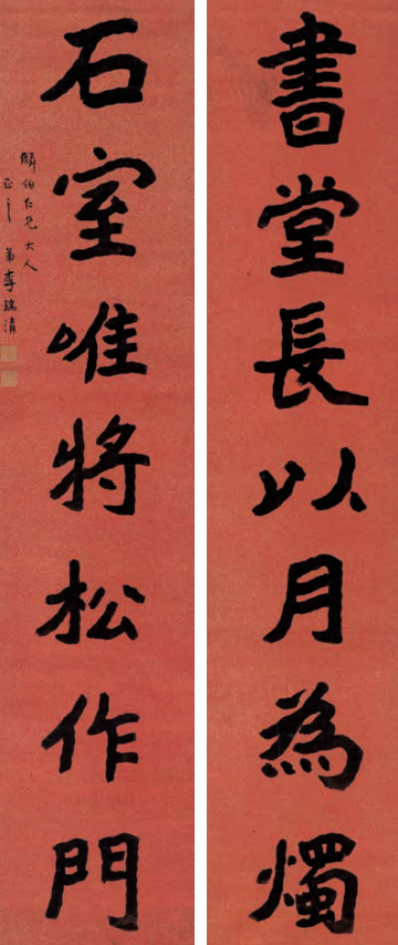 楷书 七言联 书堂长以月为烛 石室唯将松作门 201×41cm×2