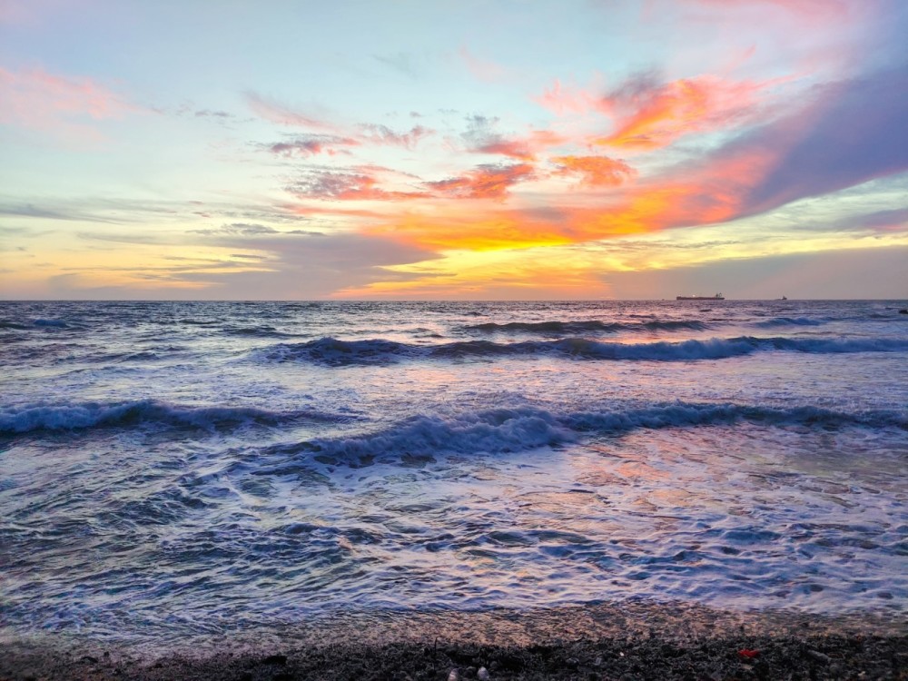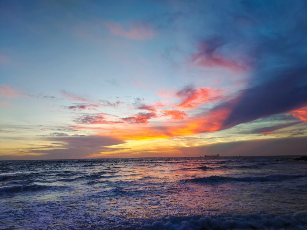 日暮降临,坐在珊瑚石堆上静静地吹着海风,甭提有多惬意,即使天黑也舍不得走。当天晚上遇见的落日,超级美!