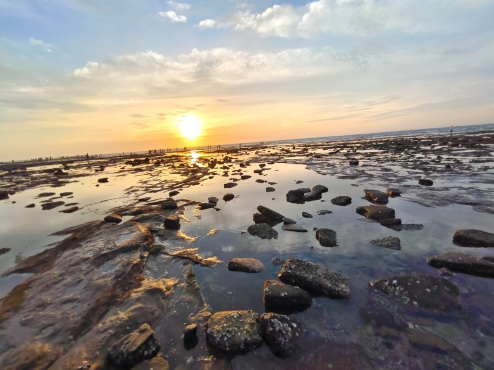 从鳄鱼山回到民宿,快到日落时间了,赶紧带上相机去石螺口沙滩看日落,整个涠洲岛我最爱石螺口沙滩,这里有超多的特色珊瑚石,珊瑚石里藏着许多精美的贝壳,看日落找贝壳两不误。