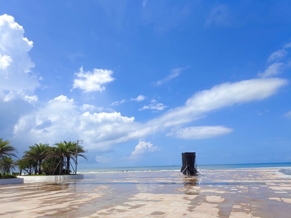 刚到银滩时天气还十分晴朗,结果突然下起了暴雨,暴雨持续不断越下越大,我们几经纠结都准备打车走了,天空突然又放晴,仿佛那场雨就没下过一样。一切都那么姻缘巧合,或许都是最好的安排。