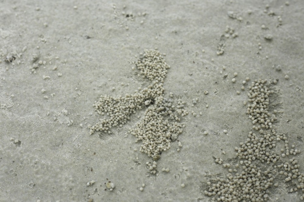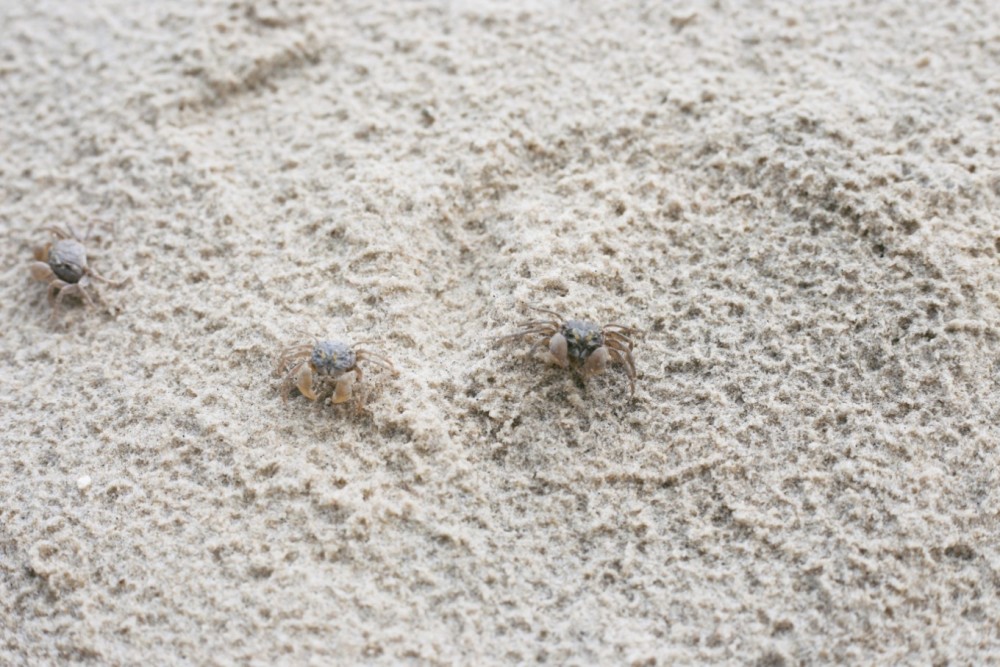 银滩沙子很细腻,有特别多小沙蟹在沙滩上打洞,行动也特别敏捷,嗖一下就爬进洞里了。