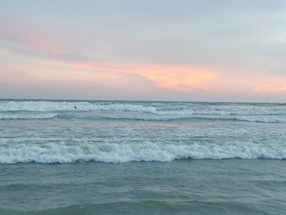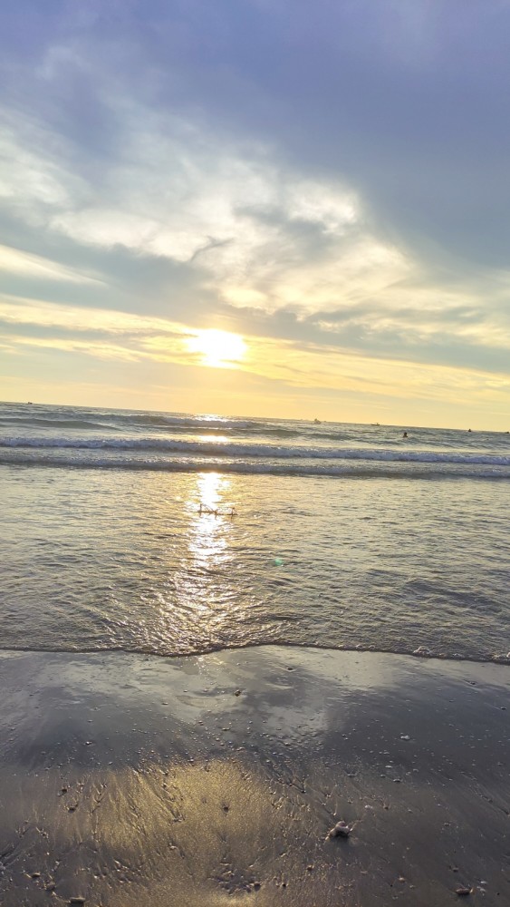 阳光逐渐变得强烈,游客渐渐变少,我们俩(主要是我)玩嗨了,一直没走,在海边玩到了大概十点多,回到民宿才发现我真是小瞧了海边早晨的太阳,它紫外线是真的超级强啊,露在外边的皮肤直接晒红了,还伴有灼烧感,大家去玩一定要做好防晒!做好防晒!做好防晒!不然真的 会晒伤然后变得黢黑黢黑