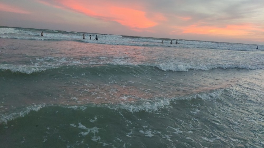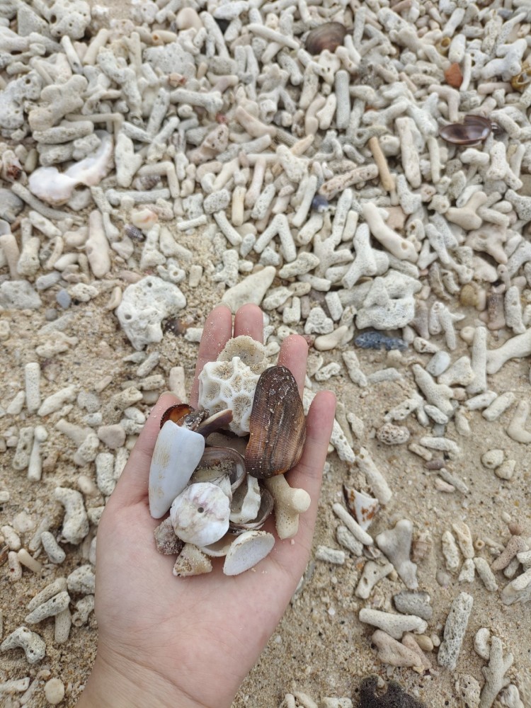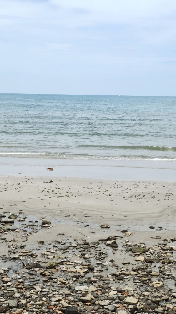 侨港海滩的沙子比较细腻,光脚踩上去都没问题。海滩上有许多钉螺壳,不知道为啥,到处都是钉螺壳,很少见别的贝壳,选了一些好看的准备给小姐妹带回去。