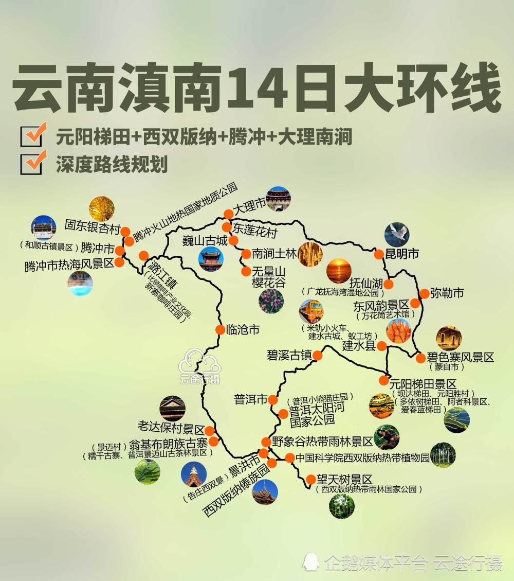 云南滇南14日大环线旅游全攻略,西双版纳+元阳梯田+腾冲银杏村+大理无量山樱花谷