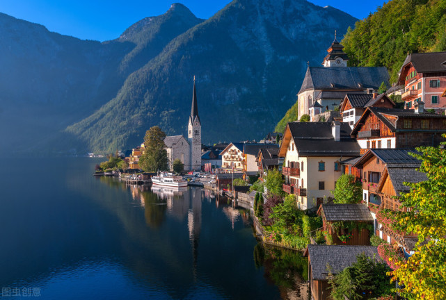 哈尔施塔特镇坐落在阿尔卑斯山脉之间,是奥地利最古老的小镇,这里四周雪山环绕,湖水清澈见底,湖岸边是鳞次栉比、如童话般清幽的住宅,让人流连忘返,被誉为欧洲最美小镇和著名爱情打卡地。