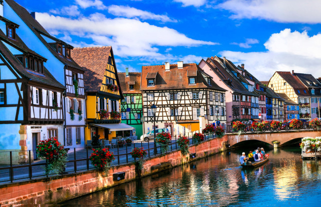 科尔马位于法国东北部阿尔萨斯,紧邻德国,是一个典型的“德法混血”小城,满街都是繁花点缀并具有德国特色的木筋房,运河静谧蜿蜒,整个小镇有着童话般的梦幻色彩,我们小学课本读过的都德《最后一课》,讲述的就是发生在这个小镇的真实故事。