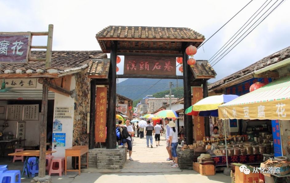 “溪头石巷”,这个牌坊非常经典,很多游客都会在这里拍照留念。牌坊后,就是溪头最旺的地方之一,溪头商业街,里面摆卖着从化的地方特产,有人说溪头村商业化了,失了原来的淳朴,也有人在这里看到了最真实的人间烟火味。