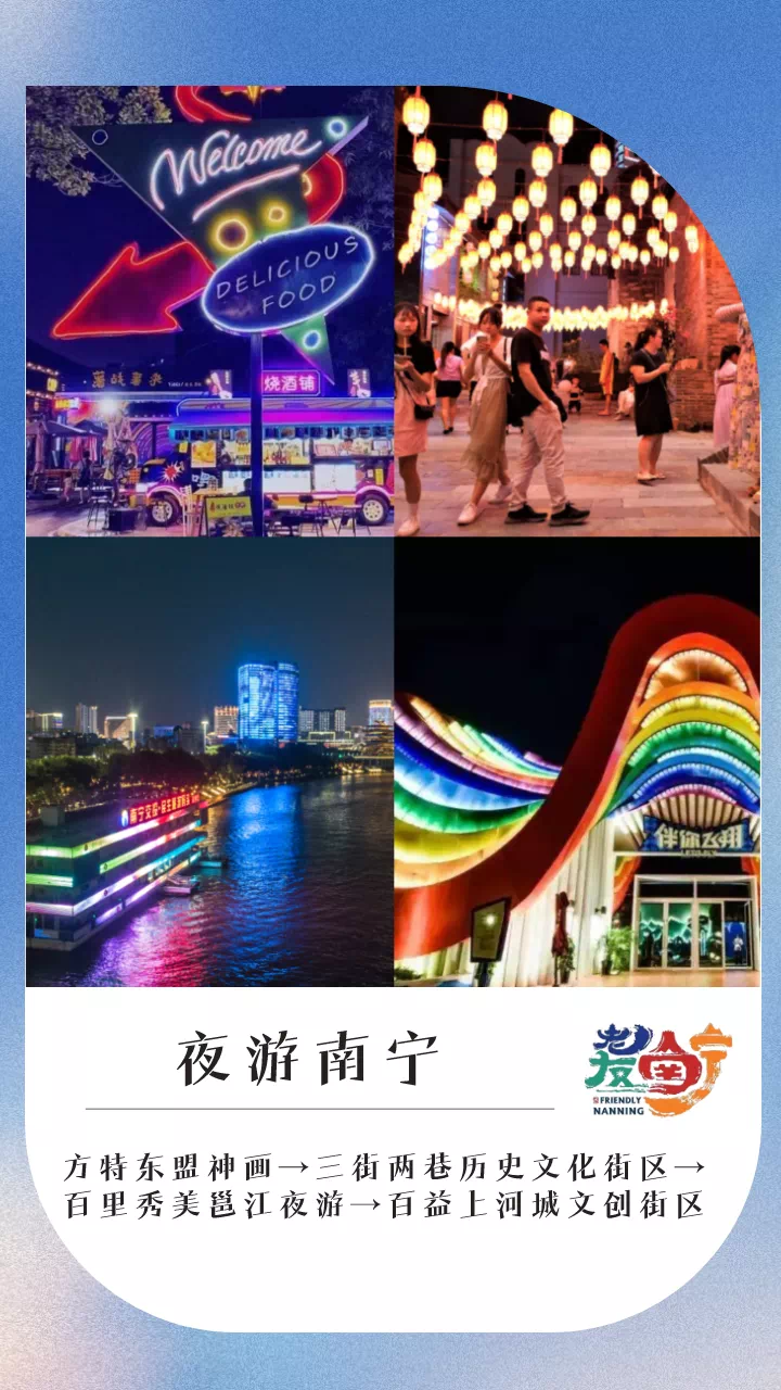 “老友南宁”特色装置展铺开南宁文旅画卷,友景,友味,友风情,尽情打卡;特色演艺+文旅推介,带你打开南宁新春游玩路线,更有各大景区门票惊喜放送,快快乐乐迎大年。